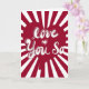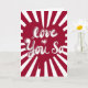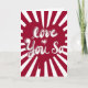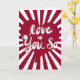 Faça uma declaração ousada de amor com este vibrante cartão de saudação de "Ame Você Tão", Sweethearts Collection. Apresentando a inscrição de bolhas inspirada no retrô sobre um impressionante fundo vermelho e preto-e-branco alvo, este design irradia diversão, confiança e paixão. Perfeito para aniversários, ou notas de amor cotidianas, é uma maneira brincalhona de dizer "Eu te amo" em estilo inesquecível. Dentro, a mensagem sincera diz: "Eu te amo mais do que as palavras podem dizer. Você é a luz e a cor que me trazem alegria todos os dias." Impresso em cores vivas em papel premium, este cartão está pronto para ser enviado para aquele que faz seu coração bater mais rápido.