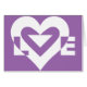Um design de logotipo gráfico, feito sob medida. AMOR em branco em roxo.