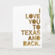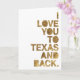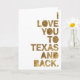 Cartão Amor Metálico Dourado Você Para o Texas e de Volta