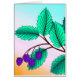 Amoras pretas em um galho de folhas verdes esmeraldas contra um fundo do céu macio, laranja a turquesa, ensolarado