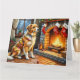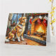 Cartão Anatolian Shepherd Fireplace with Christmas Lights