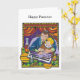 The Passover seder is a time when parents tell their children about the exodus of the Israelites from Egypt, freeing them from slavery. This card shows a father teaching his daughter at the seder table, surrounded by Passover items like matzah and the haggadah.