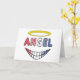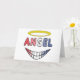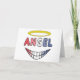 Angel design apresenta um halo com a palavra "Angel" embaixo. Abaixo está um grande sorriso que pode muito bem ser angélico ou talvez principalmente. Uma imagem de anjo divertida e potencialmente irônica.
