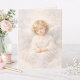 This serene design features a resting angelic child, softly rendered in watercolor, with hands gently folded in repose and a calm, trusting expression.