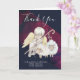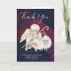 Um cartões de agradecimentos de natal cristão. Projetado com um anjo doce com asas amarelas segurando um pântano pastor. Sentado com cordeiros brancos. Fundo azul marinho e cor d'água burgundy, com minúsculos flecks de brilho dourado falso (não brilho real apenas uma imagem impressa). Personalize sua mensagem. Obrigado escrito em letras de tendências.