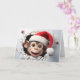 Dê ao seu Natal um toque selvagem com este retrato de animais de Natal featuring um lindo macaco bebé com um chapéu de Papai Noel na frente, fundo de flocos de neve azuis no interior e uma doce mensagem de "Feliz Natal" em uma fonte nevada no interior. Cartão de Natal perfeito para amantes de animais e vida selvagem! Apenas da Yips N' Howls.
