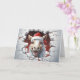 Dê ao seu Natal um toque selvagem com este retrato de Animais de Natal featuring um lindo Cavalo Bebê de chapéu de Papai Noel na frente, flocos de neve azuis no fundo e uma doce mensagem de "Feliz Natal" em uma fonte nevada no interior. Cartão de Natal perfeito para amantes de Animais e Vida Selvagem! Apenas na Yips N' Howls.