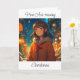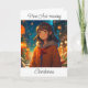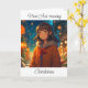 Menina de anime bonito do lado de fora em um cartão de Natal e Véspera de ano novo.