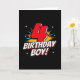 Este design de aniversariante de 4 anos é perfeito para uma festa de aniversário com tema de super-herói! Ótimo para qualquer menino de 4 anos que ama super-heróis de quadrinhos ou vilões com superpoderes! Apresenta a citação de aniversário "4 Aniversariante!" em um tema de super-herói de quadrinhos que o aniversariante super de 4 anos vai ADORAR!
