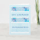 Cartão de aniversário para o 34º ano. Cartão azul com lindas flores azuis, brancas e verdes