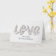 Texto de bolha com design de flor de amêndoa sobre fundo de madeira lavada em branco. Todo texto é editável, exceto para o gráfico LOVE.