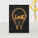 Uma lâmpada com a palavra "AMOR" iluminada dentro dela brilha contra um fundo escuro. O texto dentro pode ser alterado.