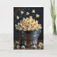 Um balde de metal brilhante é enchido até a borda com pipoca recém-passada, com alguns grãos explodindo no ar do médio. O texto dentro é editável.