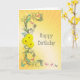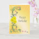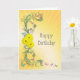 Um belo cartão de aniversário com flores amarelas margaridas sobre um fundo vibrante girando.
