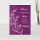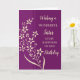 Cartão de aniversário para irmã com flores roxas e amarelas modernas e verso pensativo.