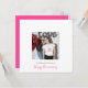 Estilo minimalista com muito espaço em branco para uma sensação verdadeiramente moderna de enviar à sua esposa desejos de aniversário com esta design totalmente personalizável. Sua foto favorita está em formato quadrado ao centro, com sua saudação em sans lettering simples e Happy Anniversário, ou sua saudação escolhida na parte inferior, em um roteiro elegante de estilo de carta à mão. Você também pode personalizar com sua mensagem no verso. Substitua facilmente as fotos de exemplo nos espaços reservados para modelo por suas próprias fotos. Você também pode alterar o fundo branco na parte frontal e rosa na parte traseira, assim como as cores e estilos do texto através da opção personalizar mais