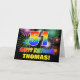 A frente deste alegre, divertido e colorido design de cartões de saudação com tema de aniversário apresenta um grande número "51" e a mensagem "HAPPY BIRTHDAY", ambos coloridos com um padrão inspirado no gradiente do espectro do arco-íris, juntamente com um nome de destinatário ousado e amarelo editável. A frente também tem um padrão de fundo multicolorido inspirado pela aparência de fogos de artifício comemorativos em explosão. O dentro apresenta uma mensagem de saudação de aniversário personalizável, ou talvez possa ser apagado e deixado o vazio se uma mensagem for escrita manualmente. Um vibrante cartão de aniversário personalizável como este pode ser uma maneira divertida de enviar uma mensagem celebrando o cinquenta primeiro aniversário de alguém. [~Z0000471]