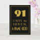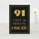 A frente deste design de cartão de saudação de aniversário com tema de aparição de vintage apresenta um grande deco de arte, com o número inspirado "91", a mensagem "FELIZ 91ruas IRTHDAY", um nome personalizado e um padrão de borda que consiste em linhas. O fundo da frente é preto colorido. O dentro apresenta uma mensagem de saudação de aniversário editável, ou talvez pudesse ser apagado e deixado o vazio se uma mensagem fosse escrita manualmente. Um cartão de aniversário personalizado como este pode ser uma maneira divertida de enviar desejos de aniversário a alguém que comemora seu nonagésimo primeiro aniversário. [~Z0000502]