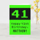 A frente deste design de cartões de saudação de aniversário elegante e divertido apresenta um grande número de jogos de vídeo verde "41". Também apresenta a mensagem de saudação de aniversário "Feliz aniversário de 41ruas", e um nome que pode ser personalizado. O dentro apresenta uma mensagem de saudação de aniversário personalizável, ou talvez possa ser apagado e deixado o vazio se uma mensagem for escrita manualmente. Um cartão de cumprimentos de aniversário nerd e bobo como este pode ser usado para reconhecer o quarenta primeiro aniversário de um cientista, um historiador da computação, ou alguém que aprecia videos games antigos. [~Z0000430]