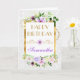 Cartão Aniversário das Flores de Verão de Roxo e Creme