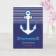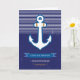 Este cartão náutico é elegante com o fundo azul marinho e listras brancas e âncora. Cartão marítimo perfeito para personalizar com o nome do casal! Eles vão adorar este cartão de congratulações personalizado de aniversário de 1 ano de casamento.