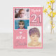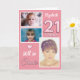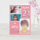 Personalize este aniversário de 21 anos Card com um nome e fotos Projetados em rosa e branco, com coração de amor. 21 de hoje Feliz Aniversário Ainda tão bonito
