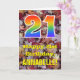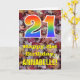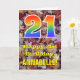 A frente deste design de cartões coloridos, com tema de outono e de aniversário rústico apresenta um grande número "21" com um padrão inspirado no gradiente do espectro arco-íris, juntamente com a mensagem "Happy aniversário de 21 anos," e um nome personalizado. A frente apresenta um pano de fundo que mostra folhas caídas rústicas no outono. O dentro apresenta uma mensagem de saudação de aniversário personalizável, ou talvez possa ser apagado e deixado o vazio se uma mensagem for escrita manualmente. Um cartão de aniversário personalizável como este pode ser uma maneira divertida de reconhecer o vigésimo primeiro aniversário de alguém. [~Z0000384]