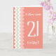 Cartão Aniversário de 21 anos frontal personalizado, cora