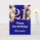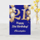 Cartão aniversário de 21 anos Marinho Azul e Dourado Balõ