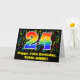 Este cartão de cumprimentos de aniversário alegre, emocionante e colorido apresenta um grande número "24" com um padrão inspirado em gradiente de espectro de arco-íris. Ele também apresenta a mensagem "Feliz Aniversário de 24 anos," e um nome de destinatário editável. A frente também apresenta notas musicais coloridas e um padrão de símbolos. O interior apresenta uma mensagem de aniversário personalizada, ou talvez possa ser limpo e deixado em branco se uma mensagem for escrita à mão. Um cartão de aniversário personalizado como este pode ser uma maneira divertida de enviar cumprimentos de aniversário para um músico, um cantor, um compositor musical ou outra pessoa que esteja celebrando seu vigésimo quarto aniversário.
