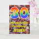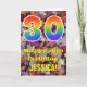 A frente desta colorida design de cartões de saudação de aniversário de outono e rústica apresenta um grande número de "30" com um padrão inspirado no espectro do arco-íris. Também apresenta a mensagem "Happy aniversário de 30 anos," e um nome editável. A frente apresenta um pano de fundo que mostra folhas caídas rústicas no outono. O dentro apresenta uma mensagem de saudação de aniversário personalizável, ou talvez possa ser apagado e deixado o vazio se uma mensagem for escrita manualmente. Um cartão de aniversário personalizado como este pode ser uma maneira divertida de enviar uma mensagem em comemoração do trigésimo aniversário de alguém. [~Z0000384]
