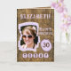 cartão aniversário de 30 anos. Adicione sua foto e um nome. Projetado com um fundo de madeira falso e curvada marrom. 30 de hoje, ou mude a idade para o fato. Castanho e lilás.
