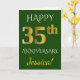 Este simples design de cartão de felicitações de aniversário de casamento personalizado apresenta a mensagem "FELIZ 35º ANIVERSÁRIO", com o "35º" tendo uma aparência semelhante ao dourado falso. A frente também apresenta um nome personalizado e um fundo verde. O interior apresenta uma mensagem de felicitações de aniversário de casamento personalizada. Pode ser dado a um marido ou uma esposa em celebração do trigésimo quinto aniversário de casamento do casal. [~Z0000086]