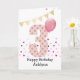 Cartão Aniversário de 3 anos de Bolinhas Rosa Confetti