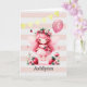 Um cartão de aniversário de 3 anos de fada cor-de-rosa, que pode ser personalizado com seu nome e sua idade. Possui cor-de-rosa, ouro e uma fada de morango com um balão rosa na frente. A mensagem da placa dentro também pode ser personalizada se desejada. Um cartão de aniversário de fada personalizado que guarda para filha, sobrinha, neta, etc.