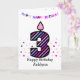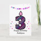 Cartão Aniversário de 3 anos rosa e roxo