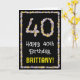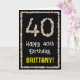 A frente deste design de cartões de saudação de aniversário divertidos e inspirados na natureza tem a mensagem "Happy aniversário de 40 anos," e um nome de destinatário personalizado. O grande número "40" e a borda na frente apresentam ícones de flor. O dentro tem uma mensagem de saudação de aniversário personalizável, ou talvez pudesse ser apagado e deixado o vazio se uma mensagem fosse escrita manualmente. Um cartão floral e editável de aniversário como este pode ser usado para reconhecer o quadragésimo aniversário de alguém. [~Z0000648]