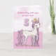 Cartão Aniversário de 5 anos Cavalo Rosa Com Coroa