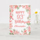 Cartão de Aniversário Floral Aquarela Peônias Rosa Bege 93º Aniversário. Para personalização adicional, clique no botão "Personalize" e use nossa ferramenta de design para modificar este modelo.