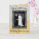 Recorte de renda branca e fundo de cetim dourado com moldura preta e prata. Acento de anéis dourados. Interior: Texto e 2ª foto que também é elegantemente emoldurada. *Texto personalizável. Por favor, use os modelos à direita para sua conveniência.