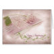 tulipa rosa na pilha de cartões de saudação com vinheta pastel para aniversário de casamento