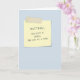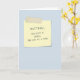 Esses cartões de aniversário de sobriedade simples de 5" x 7" apresentam uma nota escrita em um pedaço de papel amarelo colado em um fundo azul celeste com o nome da pessoa aniversariante. Mensagem na frente, "você manteve a simplicidade, um dia de cada vez". A mensagem interna, "parabéns por cinco anos de sobriedade!"