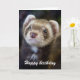 Feliz cartão de aniversário com uma fotografia de um furão. Personalizável.