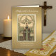 Celebre o aniversário do sacerdócio com esta bela imagem católica tradicional vintage do sacerdote oferecendo o Santo Sacrifício da Missa no altar. Um versículo das escrituras está incluído, bem como uma saudação. Todo o texto e fontes podem ser modificados.