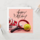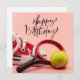 Cartão Aniversário de tênis com bola e raquete a rosa