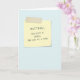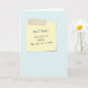 Esses cartões de aniversário de sobriedade simples 13 x 18 cm apresentam uma nota escrita em um pedaço de papel amarelo colado com fita adesiva em um fundo azul celeste com o nome da pessoa que faz aniversário. Mensagem na frente, "você manteve as coisas simples, um dia de cada vez". A mensagem interna, "parabéns por um ano de sobriedade!"
