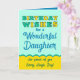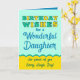 Celebre o dia especial da sua filha maravilhosa com este doce cartão de aniversário! Cheio de desejos sinceros e amor, é perfeito para deixá-la saber o quão maravilhosa ela é. Quer ela esteja perto ou longe, esta carta atenciosa irá iluminar o seu aniversário e fazê-la sentir-se mais amada. Mande sorrisos, abraços e desejos de aniversário calorosos para sua linda filha hoje! Verde / Amarelo / Azul