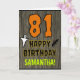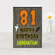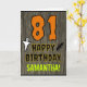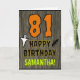 A frente deste design de cartão de saudação temático de aniversário assustador e assustador do Dia das Bruxas apresenta um grande número "81". Também apresenta a mensagem "FELIZ ANIVERSÁRIO" e um nome personalizado. Há também representações de um morcego e de um fantasma na frente. O dentro apresenta uma mensagem de saudação de aniversário personalizada, ou talvez possa ser apagado e deixado o vazio se uma mensagem for escrita manualmente. Um cartão de aniversário como este pode ser uma forma divertida de enviar desejos de aniversário a alguém que comemora o seu oitenta primeiro aniversário e que também foi nascer no Halloween (31 de outubro). [~Z0000410]