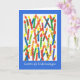 Um Cartão de Aniversário de cor brilhante com velas e "Parabéns" em sueco, de uma colagem de papel pintada à mão por Judy Adamson. O dentro é o vazio deixado para a sua própria mensagem.