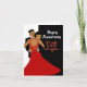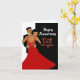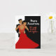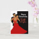 Cartão de aniversário clássico preto e vermelho apresenta um fundo preto e branco com tipografia branca sofisticada e um casal afro-americano vestindo um vestido e um smoking.